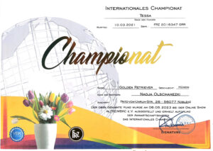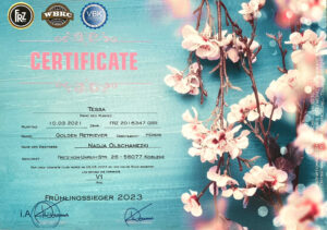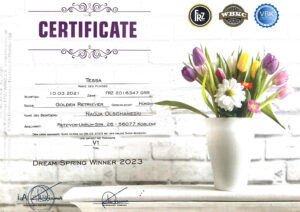 Herzlich willkommen bei unserer bezaubernden Golden Retriever-Zuchtstätte! Unsere liebe Tessa, eine echte Goldperle, ist das Herzstück unserer Zucht. Mit ihrem sanften Wesen, ihrer Intelligenz und ihrer Schönheit verkörpert sie die besten Eigenschaften dieser wundervollen Rasse.